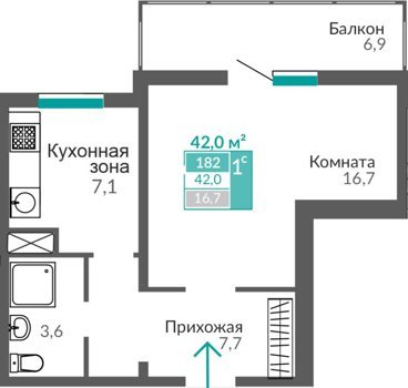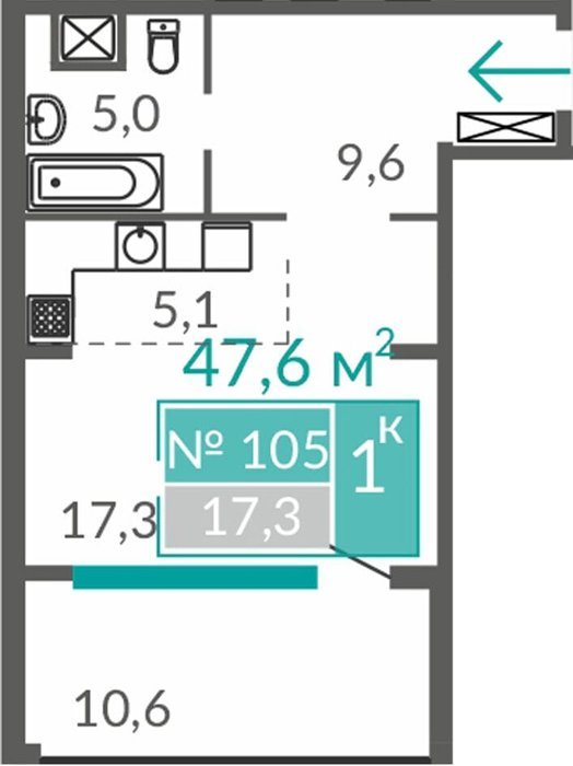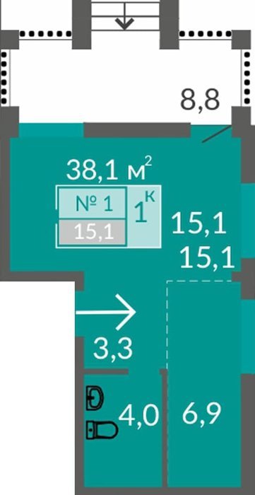 Площадь от 38.1 м2