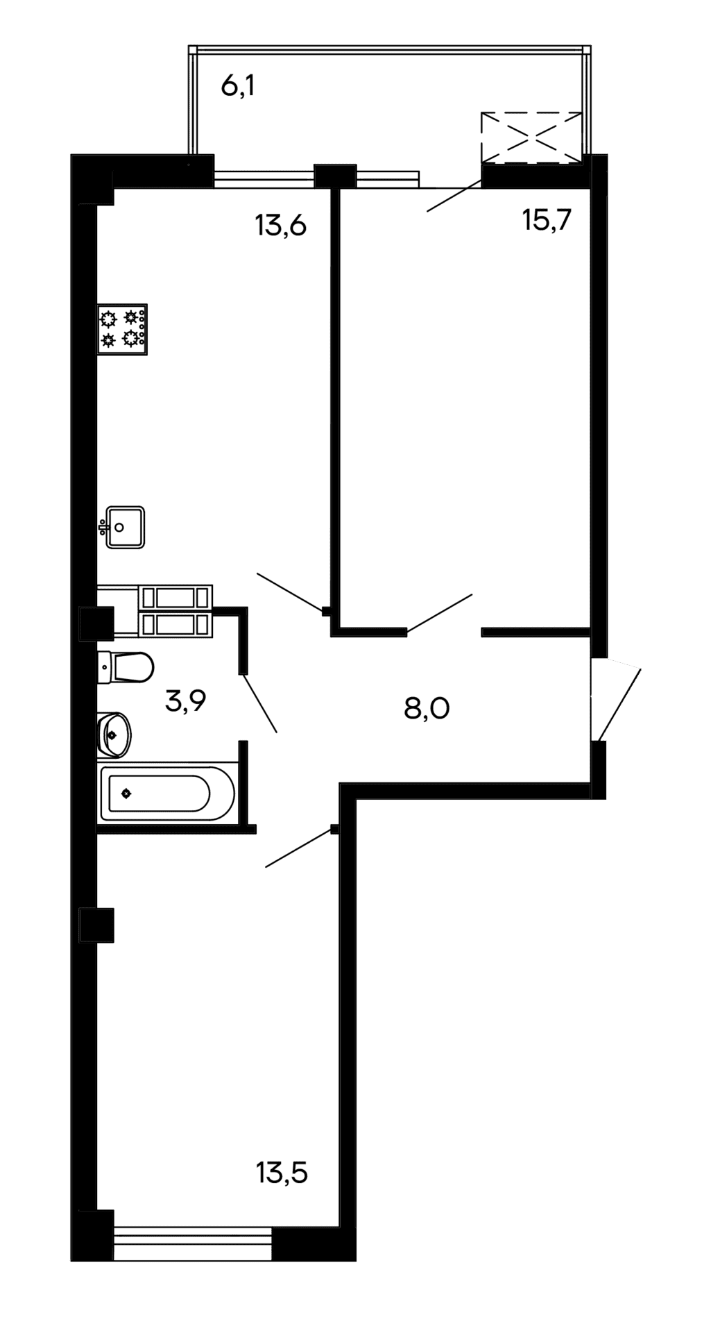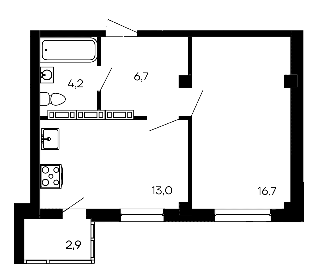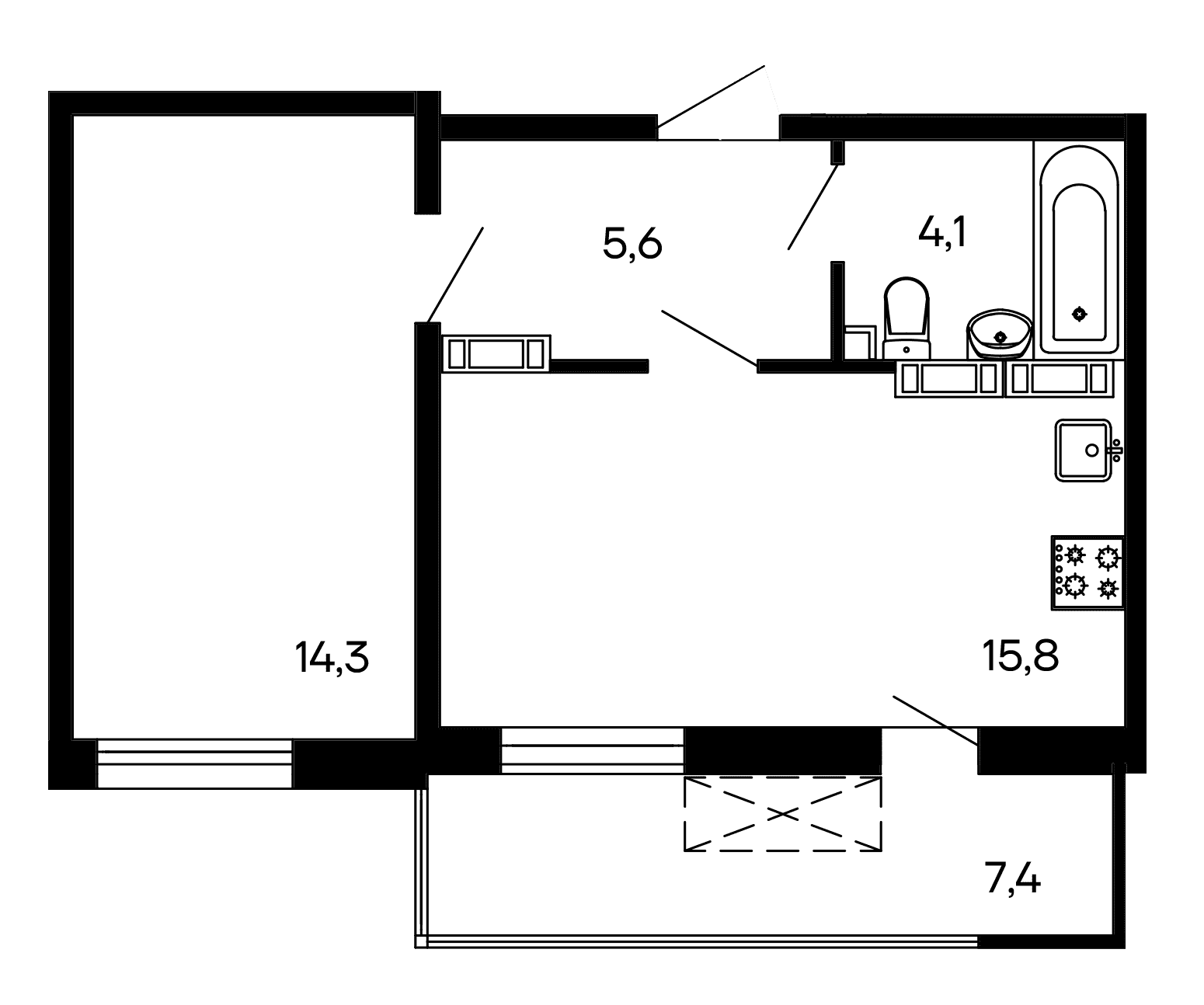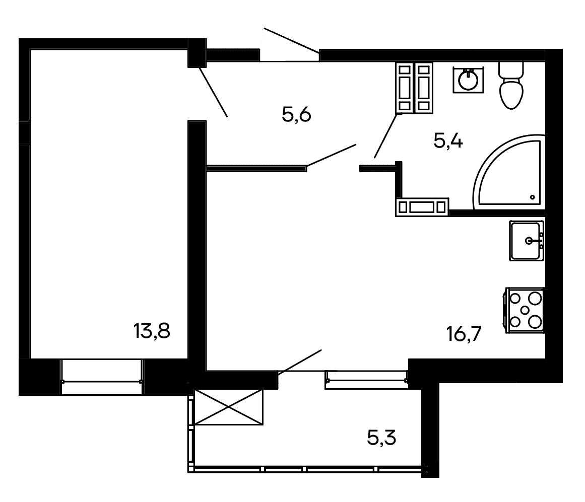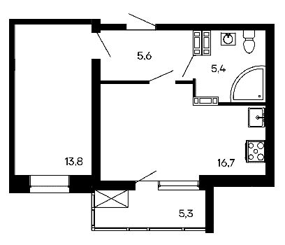 Площадь от 43.5 м2
