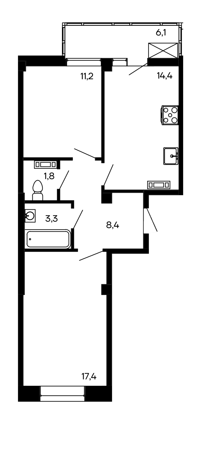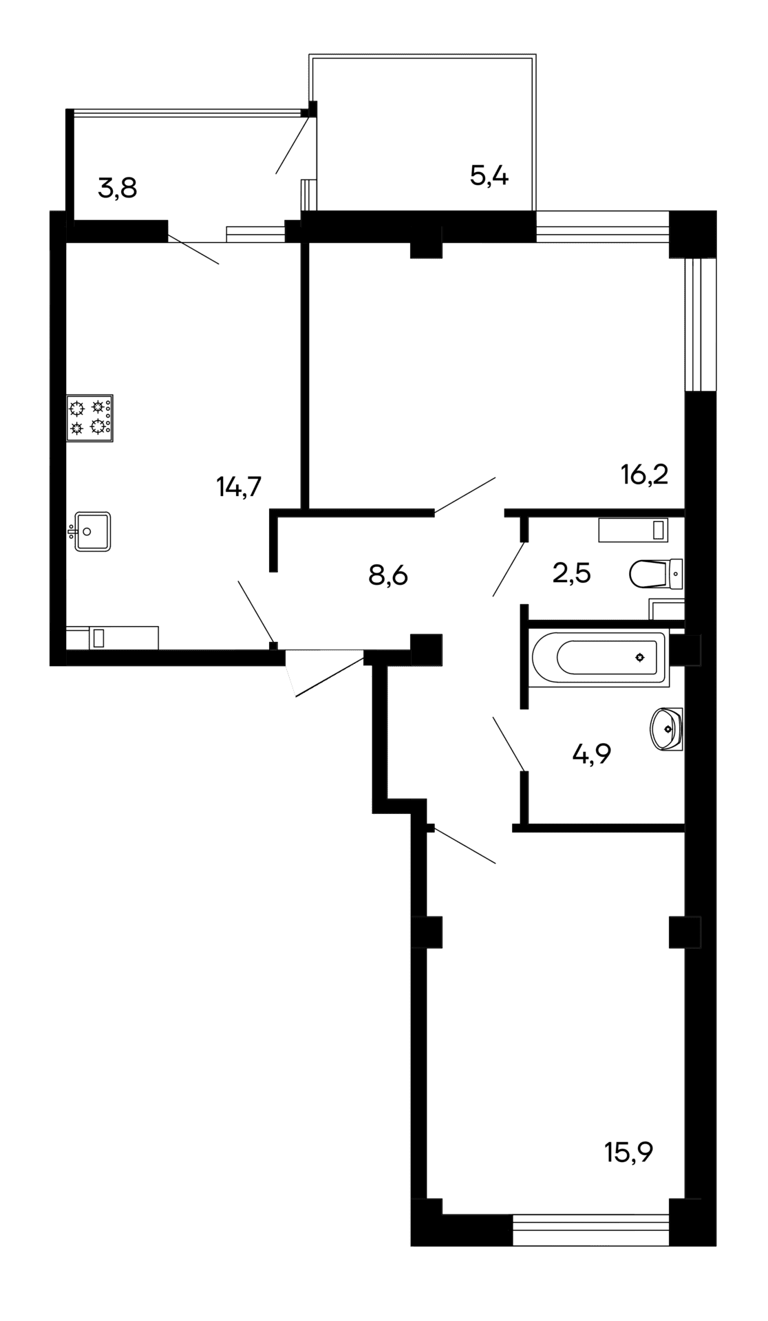 Площадь от 59.9 м2