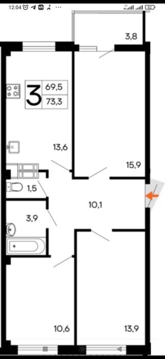 Площадь от 73.3 м2
