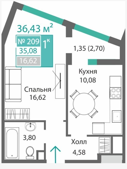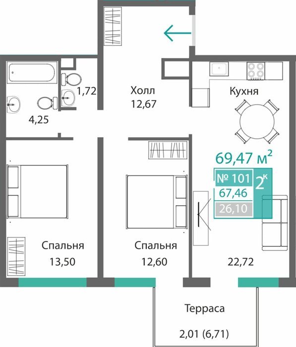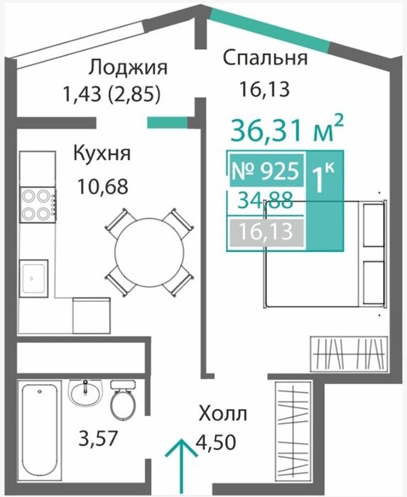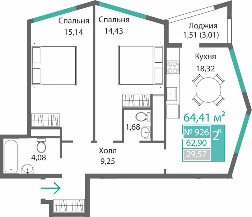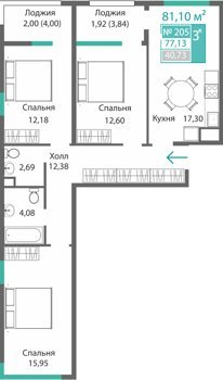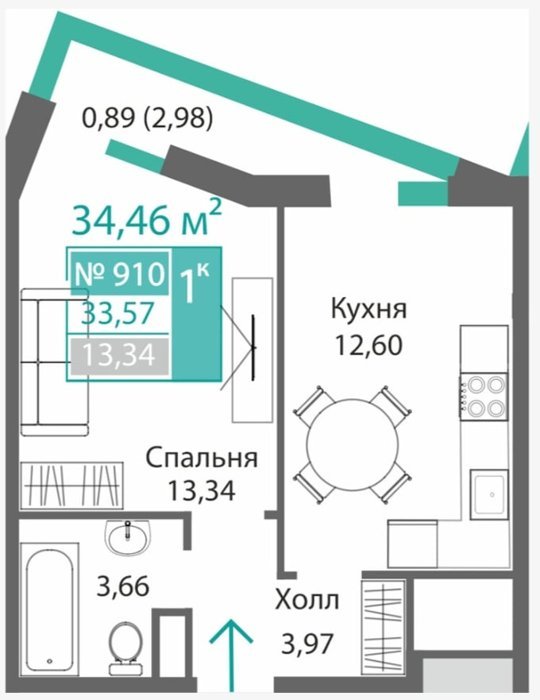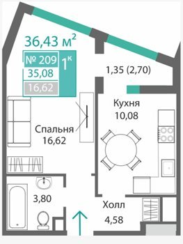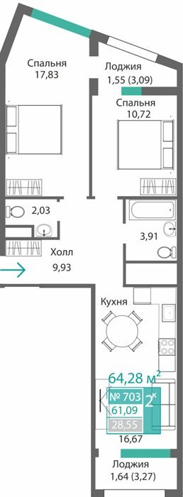 Площадь от 34.46 м2