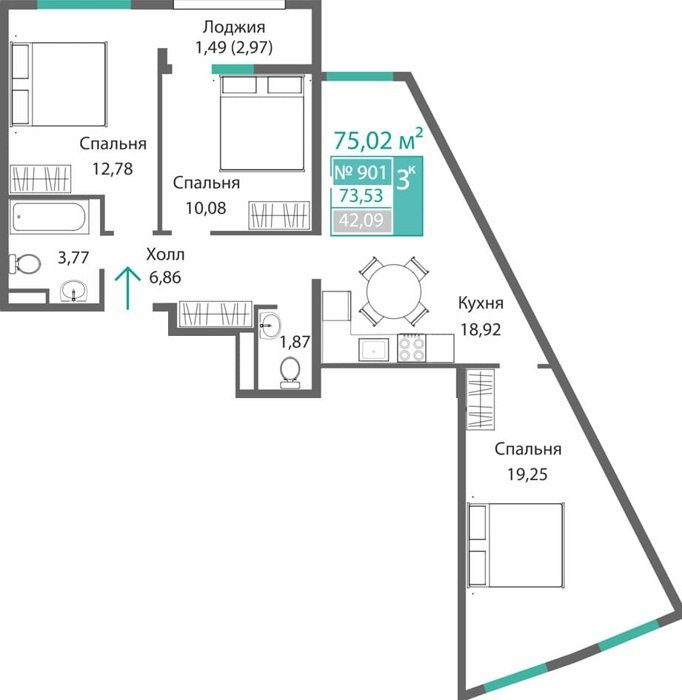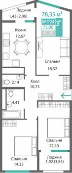 Площадь от 75.02 м2