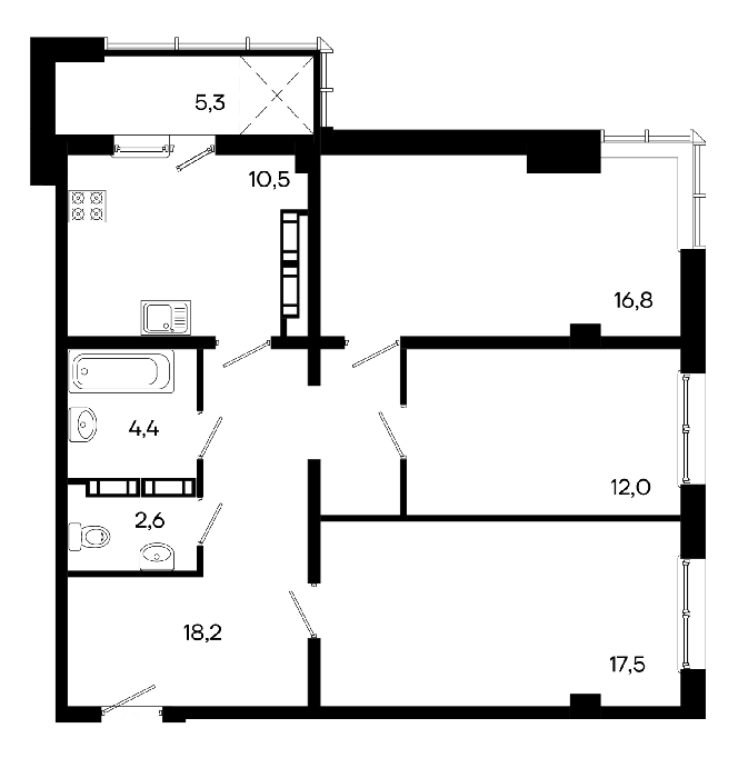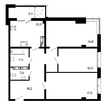 Площадь от 87.3 м2