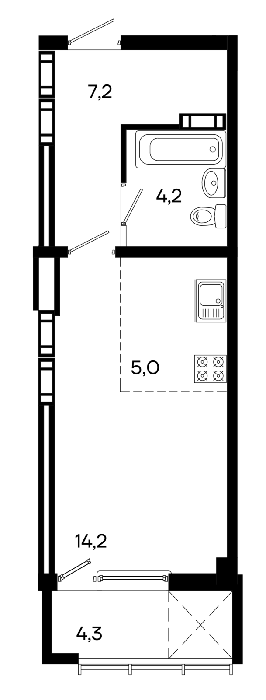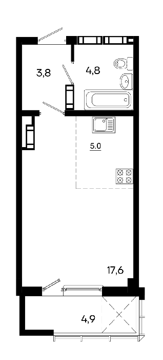 Площадь от 34.9 м2