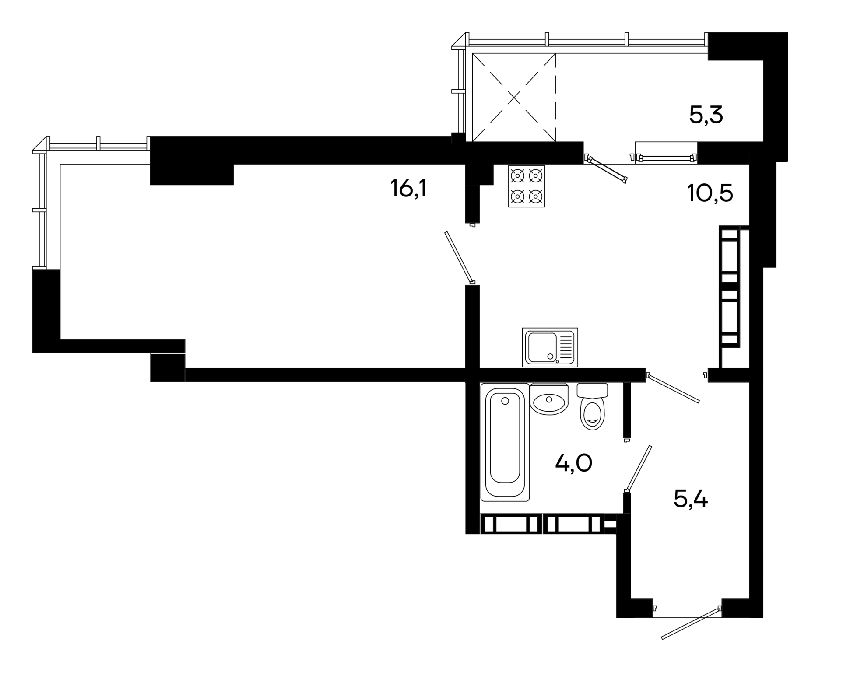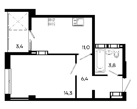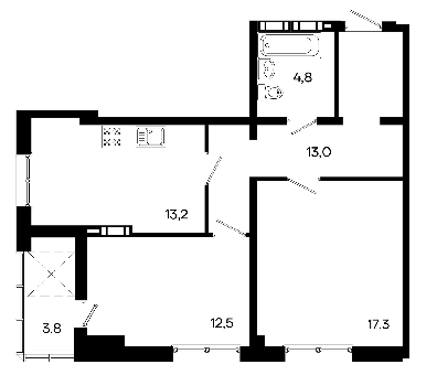 Площадь от 38.7 м2